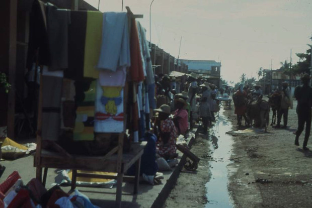 Durant mes trois semaines de déambulation, 'ti' blanc aux cheveux longs et au sac au dos léger, je n’eus pourtant jamais la sensation d’être en danger. Avec le recul, j’imagine que mes déplacements étaient suivis et me rendaient quasi intouchable… En fait, les seuls visiteurs que je rencontrais furent les passagers qui passaient une heure ou deux lors de l’escale de leur bateau de croisière à Port au Prince. Sinon, j’ai partagé quelques verres de rhum avec un auteur de pièce de théâtre québecois en quête d’inspiration… et de compagnie galante colorée. Il y avait sans doute quelques rares hôtels, bars et restaurants pour recevoir les rares visiteurs officiels et autres membres des ambassades mais je ne les ai pas vu.