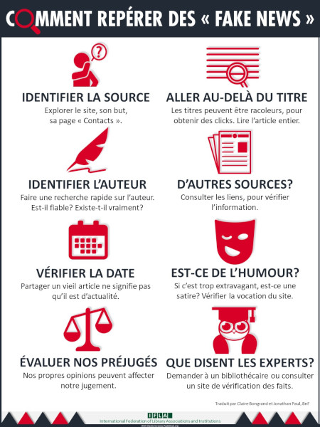 • la vérification préventive. Consulter systématiquement les sites de fact-checking lorsqu'une information paraît surprenante ou suspecte, en particulier avant de la diffuser.