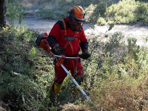 Les endroits les moins accessibles, souvent situés sur des terrains accidentés ou rocailleux sont débroussaillés manuellement. Cela permet un traitement sélectif de la végétation et la préservation d’espèces à forte valeur patrimoniales, tout en réduisant la présence des essences les plus inflammables. Seulement lorsque les conditions météo le permettent, la végétation peut également être traitée par la technique du brûlage dirigé , c’est-à-dire la mise à feu préventive de la broussaille. Très efficace, cette méthode favorise en outre l’émergence de la strate herbacée et donc un reverdissement rapide des zones traitées.