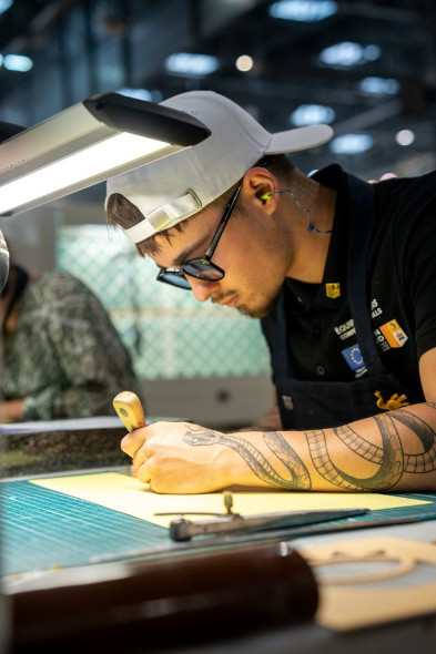 Parmi eux, Killian Pacot, vice-champion de France WorldSkills 2025 et sacré champion régional en 2024, incarne avec brio cette nouvelle génération d’artisans passionnés qui portent haut les couleurs de la maroquinerie française. Originaire de Provence-Alpes-Côte d’Azur, il est titulaire d’un CAP maroquinerie, d’un bac pro maroquinerie, d’un titre professionnel de piqueur préparateur et d’un baccalauréat gestion & finance, il conjugue savoir-faire manuel et compréhension des enjeux organisationnels.