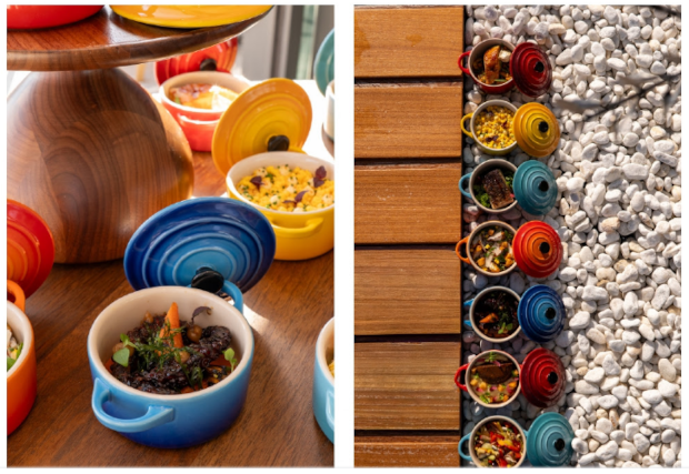 La cocotte n’est pas un simple contenant, c’est un véritable parti pris culinaire. Elle permet une cuisson maîtrisée, conserve la chaleur, respecte les textures et sublime les sauces. Elle évoque une cuisine de souvenirs, celle des plats mijotés et des repas de famille. Séduits par cette dimension à la fois technique et émotionnelle, les chefs déclinent la cocotte sur l’ensemble du brunch : entrées, plats et desserts sont servis exclusivement en cocottes individuelles. Le buffet devient fluide, rythmé, presque scénographié, loin des codes classiques du brunch traditionnel.