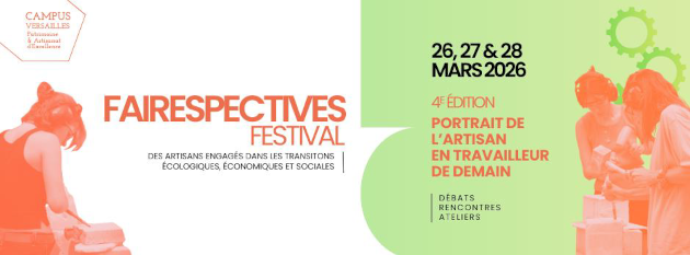 Créé par le Campus Versailles, Fairespectives est le festival qui met en lumière le rôle crucial des artisans dans les transitions économiques, écologiques et sociétales. Gratuit sur inscription et ouvert à tous, le festival ouvre chaque année un espace de réflexion et d’expérimentation pour penser autrement nos manières de produire, de travailler et de transmettre. CQFDire !
