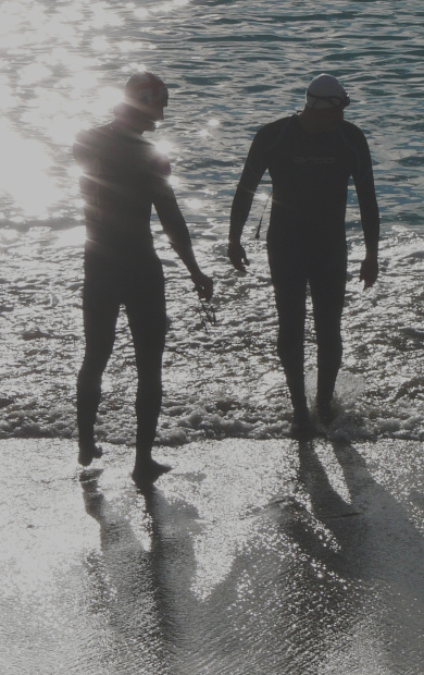 Ce matin, le ciel était gris, si gris que l’on avait du mal à trouver la ligne qui le séparait de la mer. Pas une vague pour rider la surface. Y’a pétole disent les marins, surtout les « voileux ». L’eau avait beau être transparente, la lumière du jour ne pénétrait qu’une maigre couche en surface. En nageant, une multitude de petits rayons, gris eux aussi, animait le parcours.