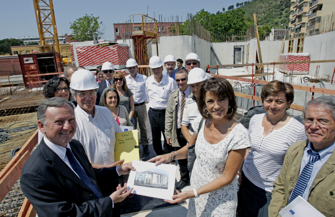 • Dominique Estrosi-Sassone, adjointe à la Politique de la Ville, au Logement et à la Cohésion Sociale lors d’une récente visite du chantier, accompagnée par le député niçois, Rudy Salles -