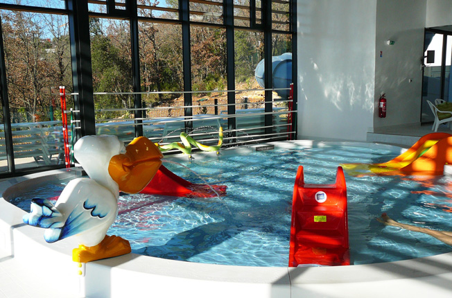 En premier lieu, il convient de se féliciter de la réalisation de cet important complexe, longtemps promis, longtemps espéré. Un magnifique outil ouvert largement au public de la zone concernée et aux scolaires. La pratique de la natation sous toutes ses formes y est évidement privilégiée. Pour cela, plusieurs bassins permettent de nager, de faire de la gym, de barboter.... Chacun a son niveau : le bon nageur dispose des six lignes d’eau du bassin de 25 x 15 mètres ; celui venu pour se détendre d’un bassin de 250 m2, d’un autre plus petit, extérieur celui-là il est accessible par un sas ; d’une pataugeoire pour les tout-petits. Les jeunes à la recherche de sensations plus fortes ont à leur disposition un toboggan de 30 mètres de long, astucieusement placé de façon à ne pas créer de nuisances sonores et dont l’aspect peu gracieux a été gommé...