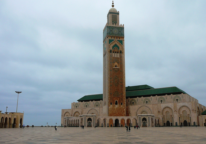 - la Mosquée Hassan II, construite en 1993 selon les vœux du roi, elle est la 3ème plus grande mosquée au monde tandis que son minaret qui culmine à 210 mètres est le plus haut de tous -