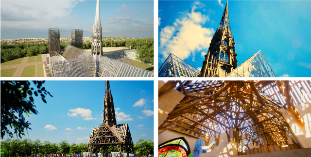 Construit en chêne et en verre, selon les techniques ancestrales des bâtisseurs de cathédrales, le projet rend hommage à l’artisanat d’excellence et au compagnonnage, patrimoine immatériel de la culture française. À travers des espaces ludiques, des ateliers participatifs, des expositions et des dispositifs immersifs, le public pourra découvrir la genèse de ce chef-d’œuvre universel et les gestes précis qui ont façonné son histoire.