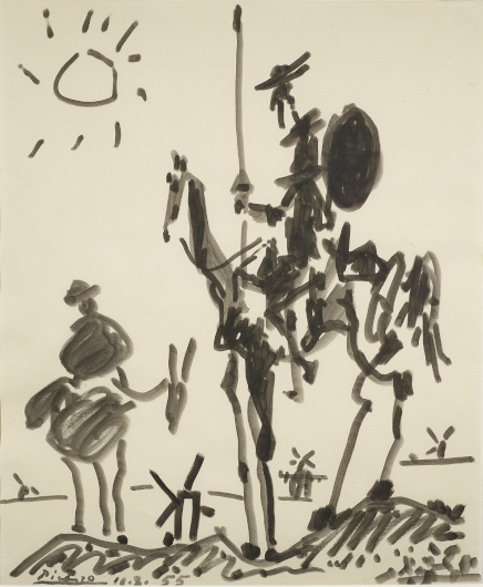 C'est tout cela que montre - avec quel faste esthétique - la grande exposition d'automne du Mucem, « Don Quichotte, histoire de fou, histoire d'en rire ». En quelques deux cents œuvres réparties sur 500 m2 et quatre grandes sections, elle revisite ce mythe littéraire à l'aune de l' histoire autant que celle de l'art. Si la vitrine consacrée aux éditions anciennes du Quichotte ravive nos penchants bibliophiles, elle ne peut rivaliser avec les magnifiques illustrations que ce roman a inspirées à des artistes aussi différents que Goya, Doré, Bracquemond, Daumier, Picasso ou Dali.