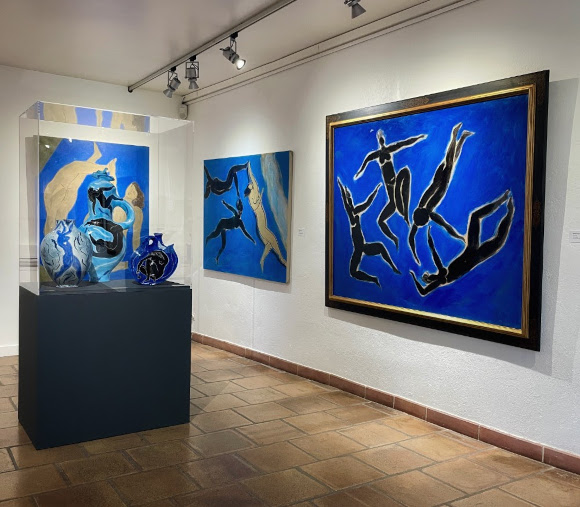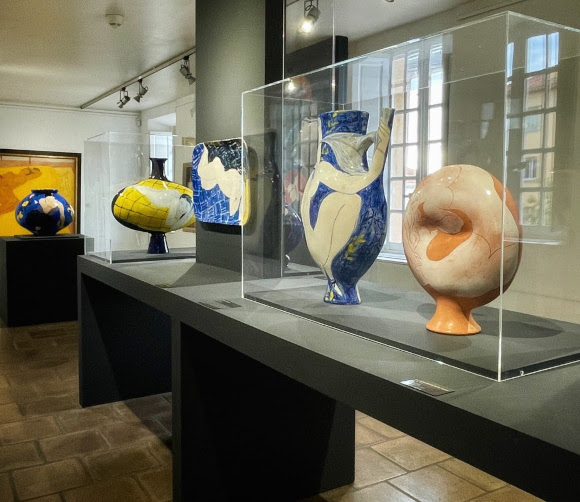 Le cœur de l’exposition met l’accent sur les céramiques réalisées à Vallauris, dans les ateliers de la galerie Sassi Milici. Loin d’être une simple expérimentation ou un exercice de style, cette production révèle le lien profond de l’artiste avec la tradition céramique locale. Elle s’inscrit dans une démarche de continuité et d’échange entre les arts, fidèle à l’esprit du lieu et à l’histoire du musée Magnelli. En associant le geste du peintre à celui du céramiste, Pierre Boncompain propose une œuvre d’une grande richesse tactile et chromatique, où la terre devient, à son tour, une toile à part entière.